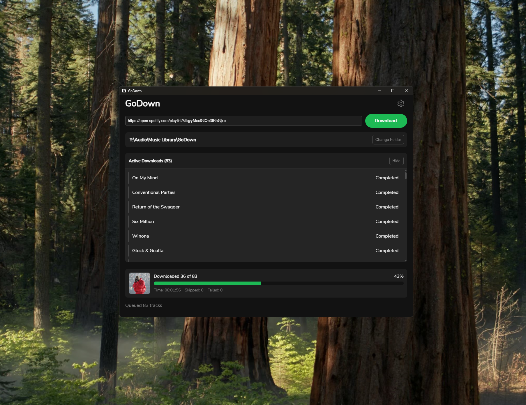 A concurrent playlist downloader which can download large playlists from various platforms to mp3s which includes embedded metadata. Uses the Wails and Svelte framework for the GUI.